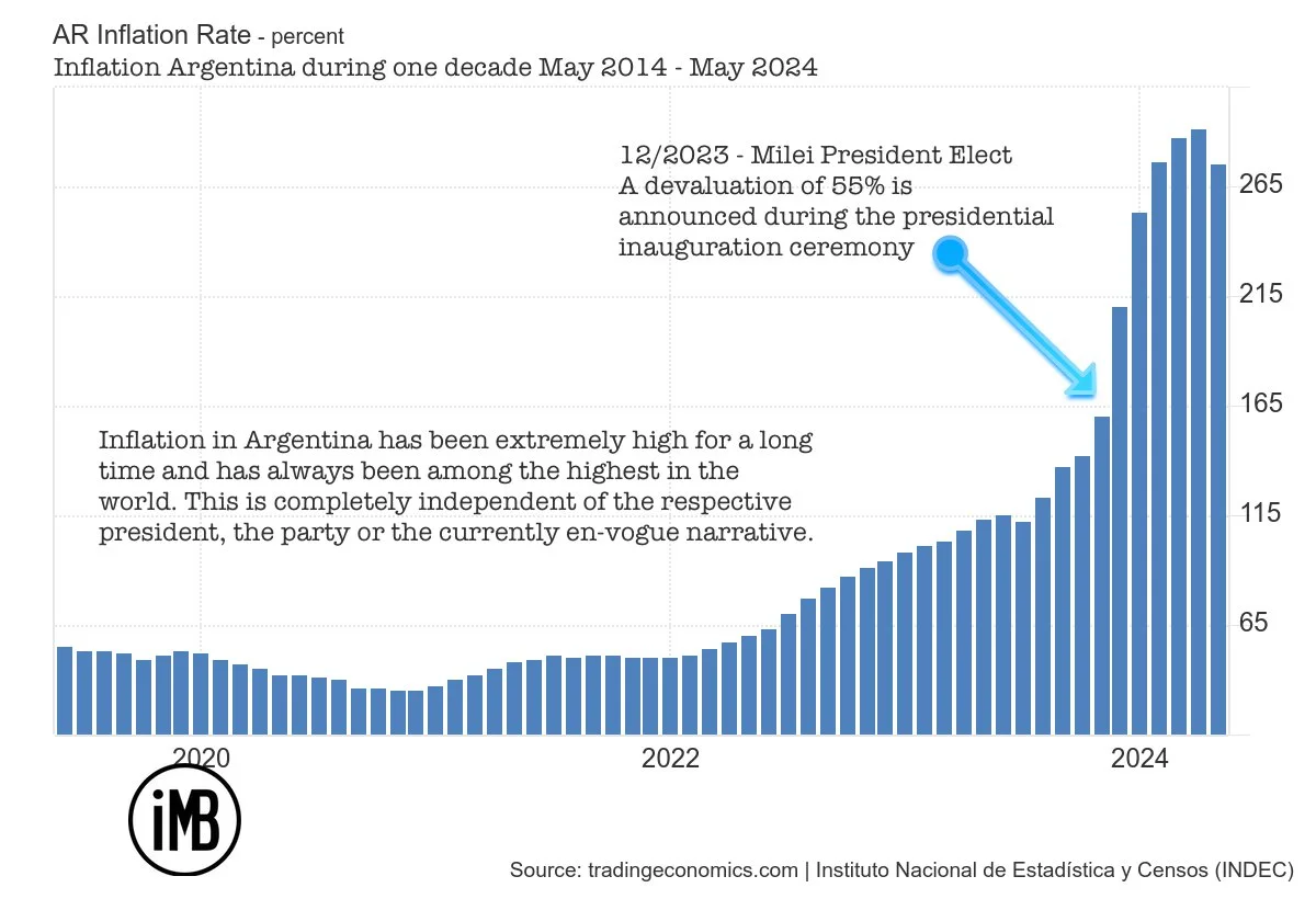 If you take a moment to calm down and ignore the social media shouting about ideoligies that swings back and forth like a pendulum, you will quickly come to a conclusion. Regardless of the prevailing narrative, not much has changed in Argentina's situation. Economically, the nation has been a failed state for at least seven decades now. This is completely independent of the fact whether left-wing nationalist Peronists, right-wing nationalist Peronists, liberals in new clothes according to the fairy tale "The Emperor's New Clothes", or now self-declared libertarian anarch-capitalist bizzare figures are flushed into power.