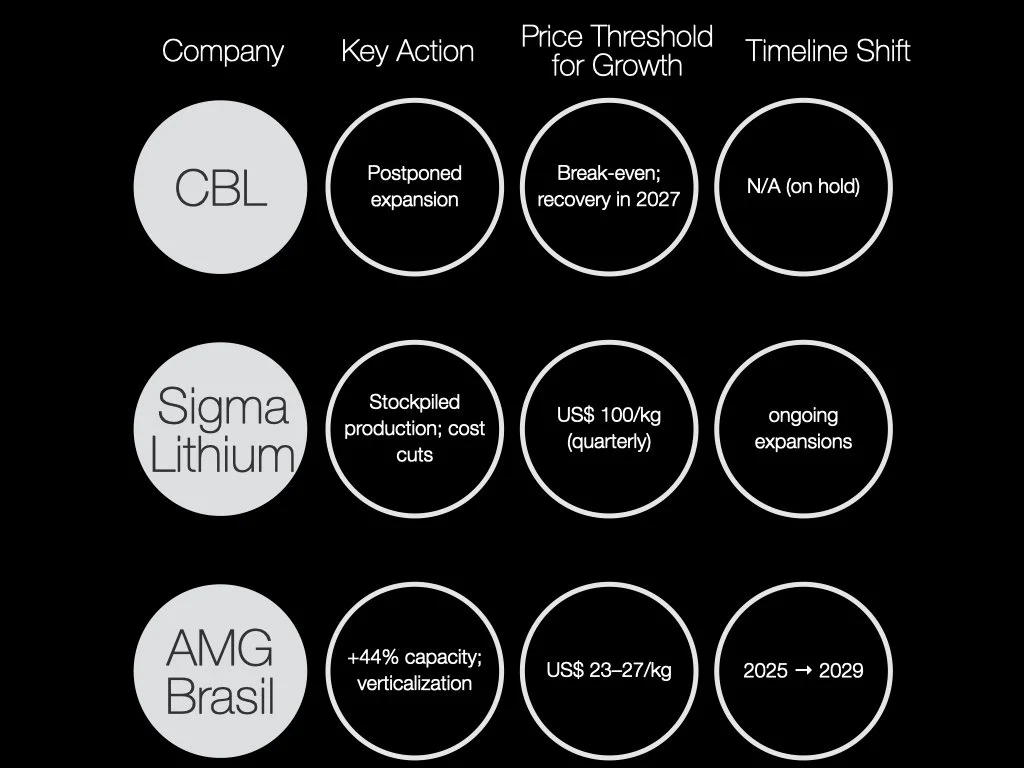 Companhia Brasileira de Lítio (CBL): The nation's oldest player postponed expanding mining from 50,000 to 10,000 tons/year and refining capacity. At break-even, execs eye 2027 for price recovery. Solution-Oriented Insight: With EV growth intact, CBL's pause is prudent—preserving capital for a stronger rebound.