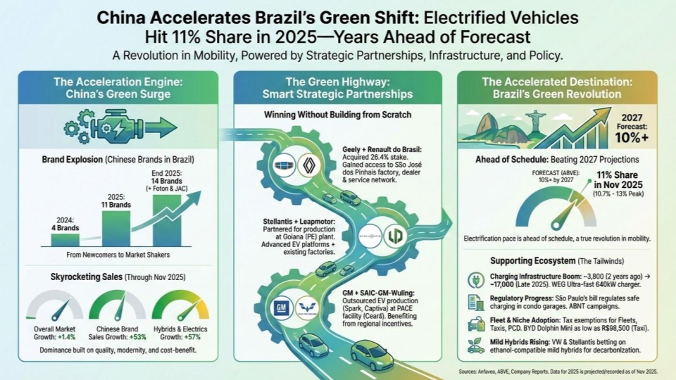 China Accelerates Brazil's Green Shift: Electrified Vehicles Hit 11% Share in 2025—Years Ahead of Forecast