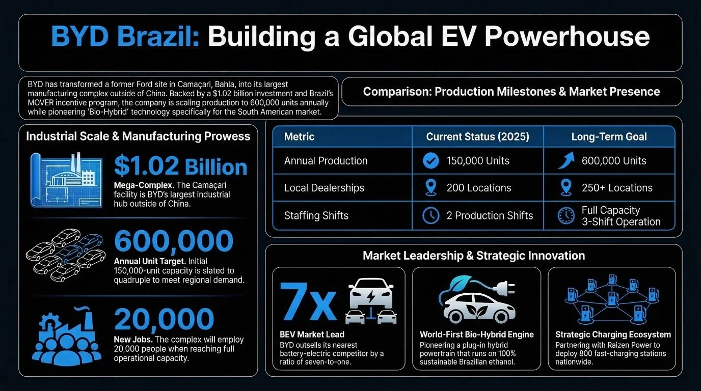 The dramatic revival of the former Ford plant in CamaƧari, Bahia, transformed into a cutting-edge NEV hub with a massive ~R$5.5 billion investment, symbolizing a southward shift in automotive gravity.